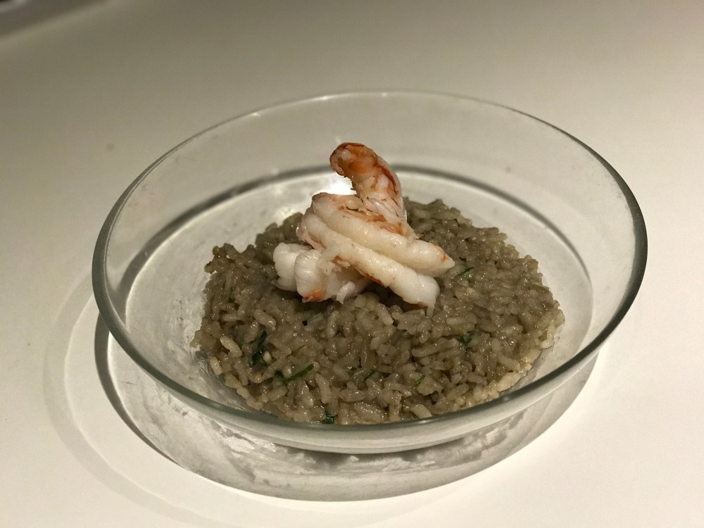1 bicchiere di vino bianco (1/2 per sfumare il risotto e 1/2 per cuocere i gamberi)