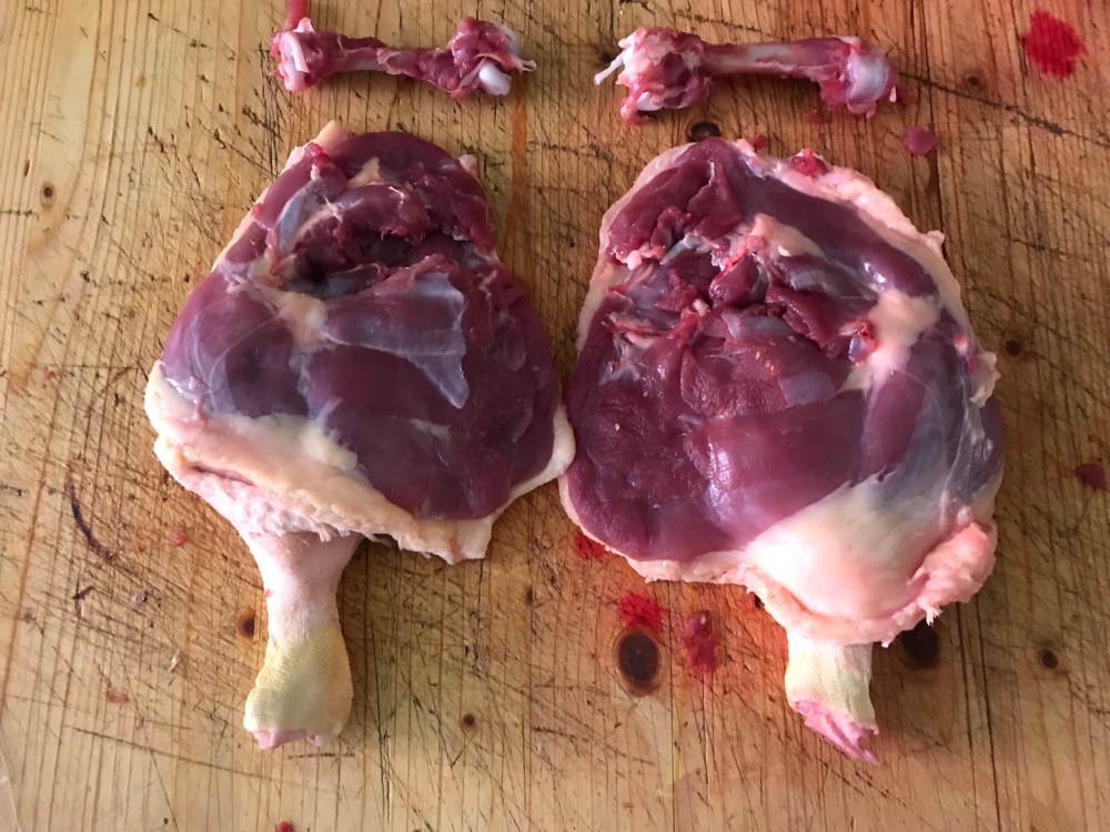 - Disossare le cosce d’anatra togliendo solo l’osso della sovracoscia