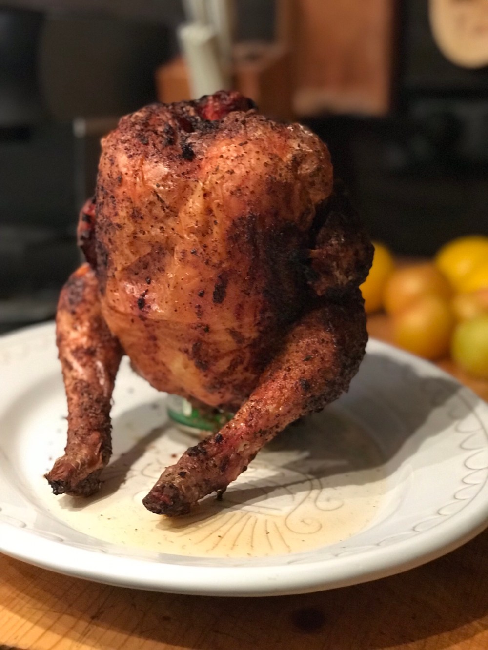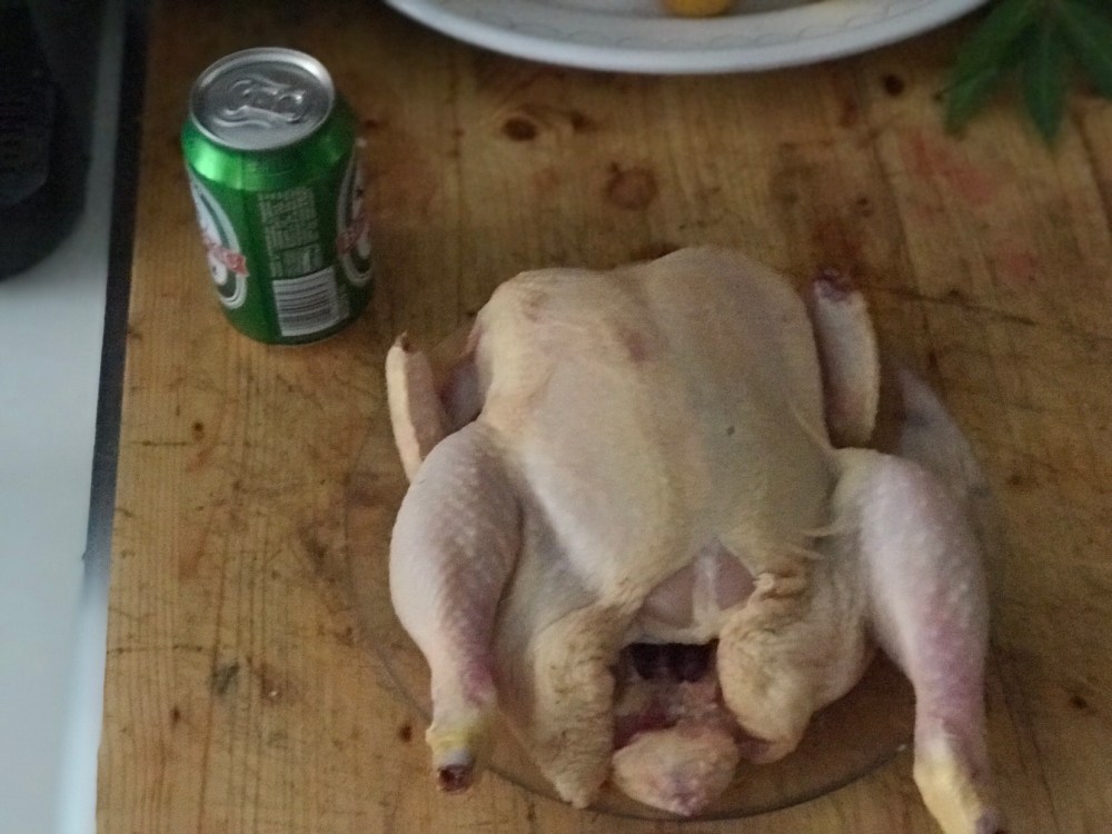 - Stappare ed inserire la lattina di birra nel pollo posizionandolo verticalmente.