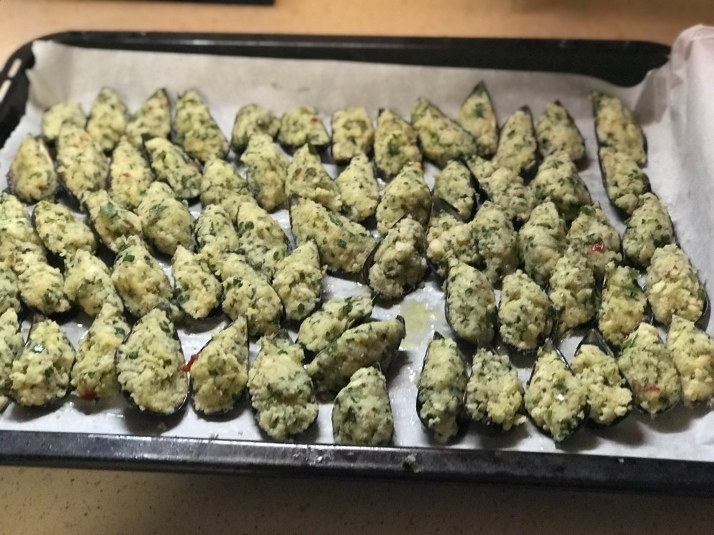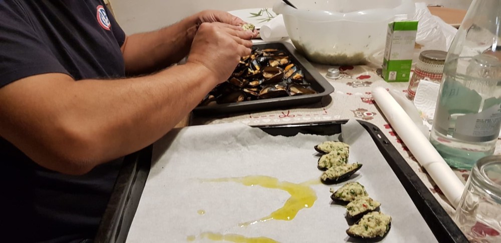 - Riempite le cozze con l’impasto.